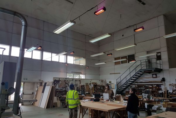 Já refletiu sobre o desperdício energético que ocorre quando climatiza toda a nave industrial? O aquecimento por emissão de radiação infravermelha da Ameno aquece diretamente pessoas e objetos, com uma eficiência energética de 97%.