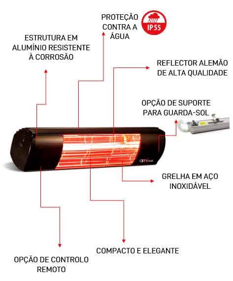 Graças à tecnologia de aquecimento por radiação infravermelha, o calor é emitido de forma imediata e direcionada, assegurando conforto térmico com elevada eficiência energética.