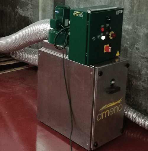 Os desumidificadores DRY da AMENO funcionam por adsorção onde o ar a ser desumidificado passa por um rotor rotativo que retém a humidade. A humidade retida pelo rotor é removida por um extractor de ar quente.